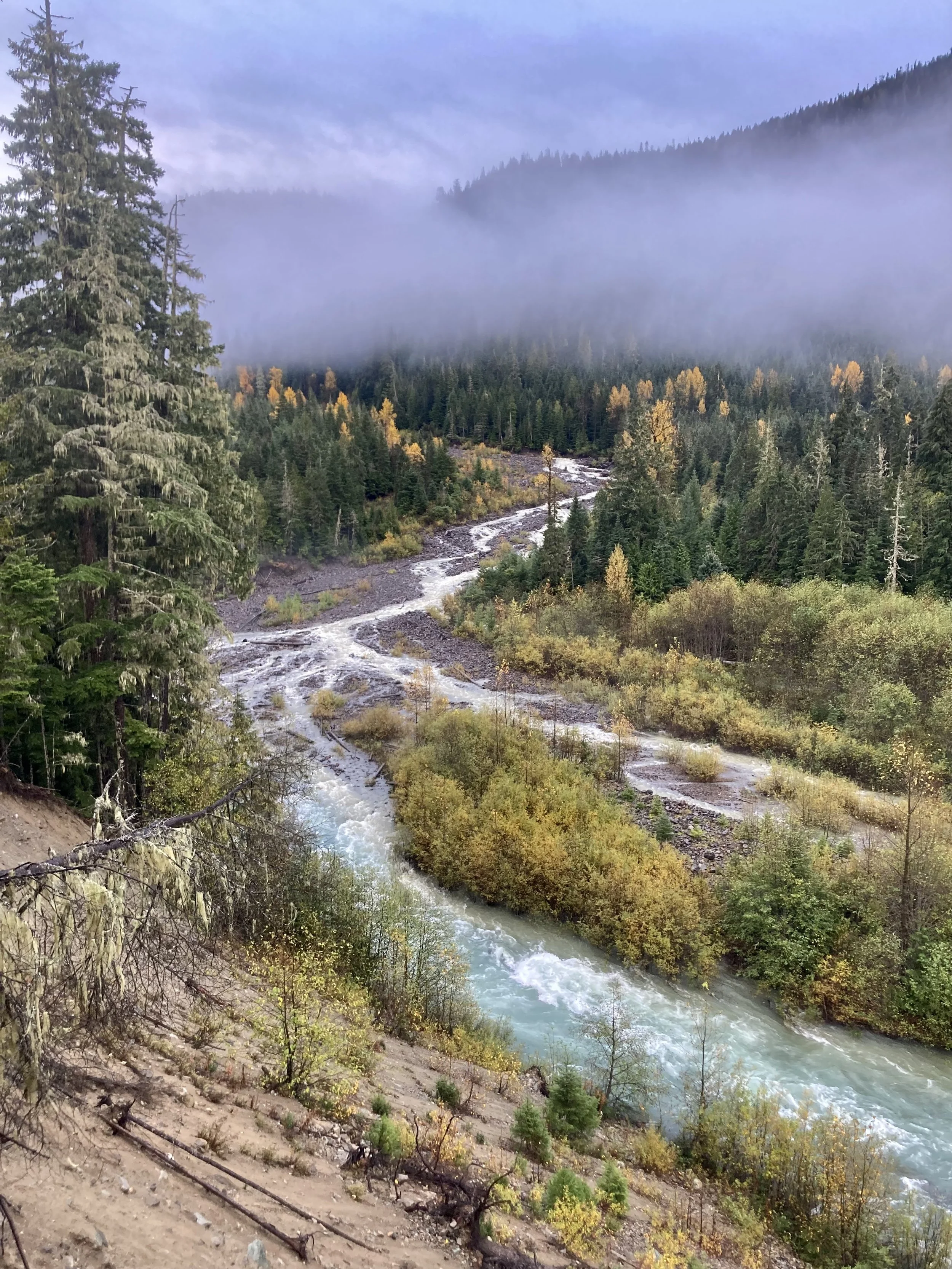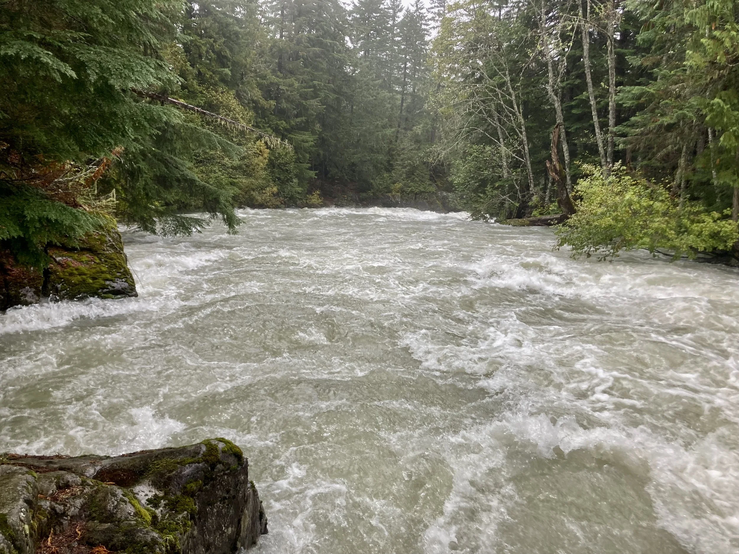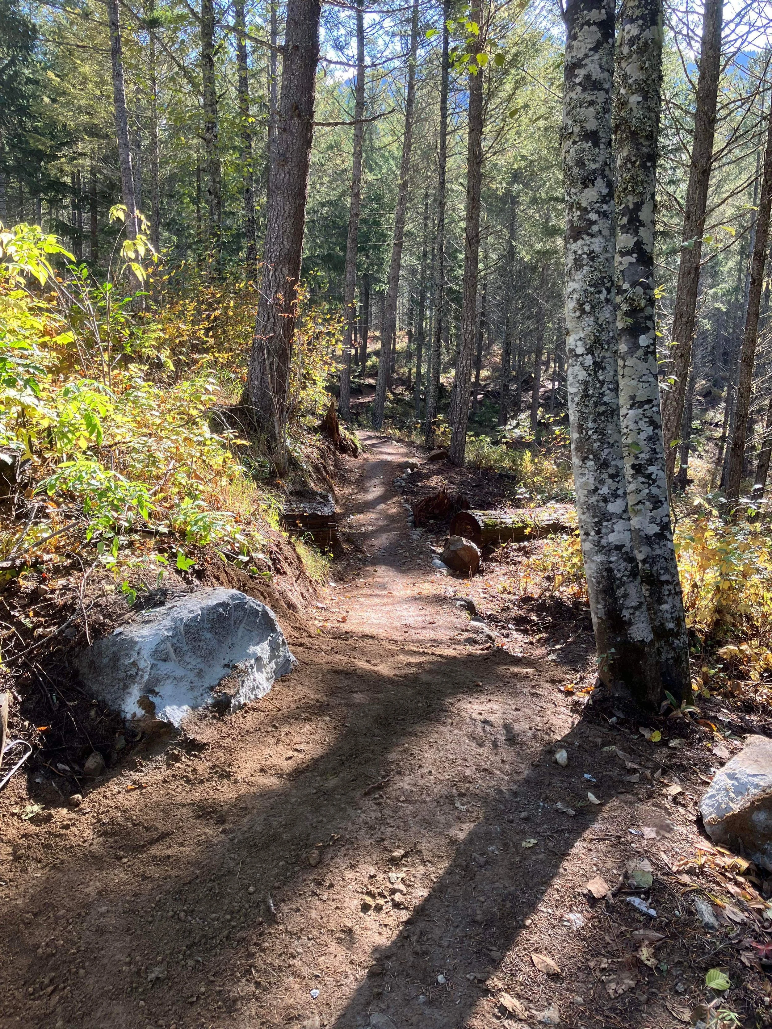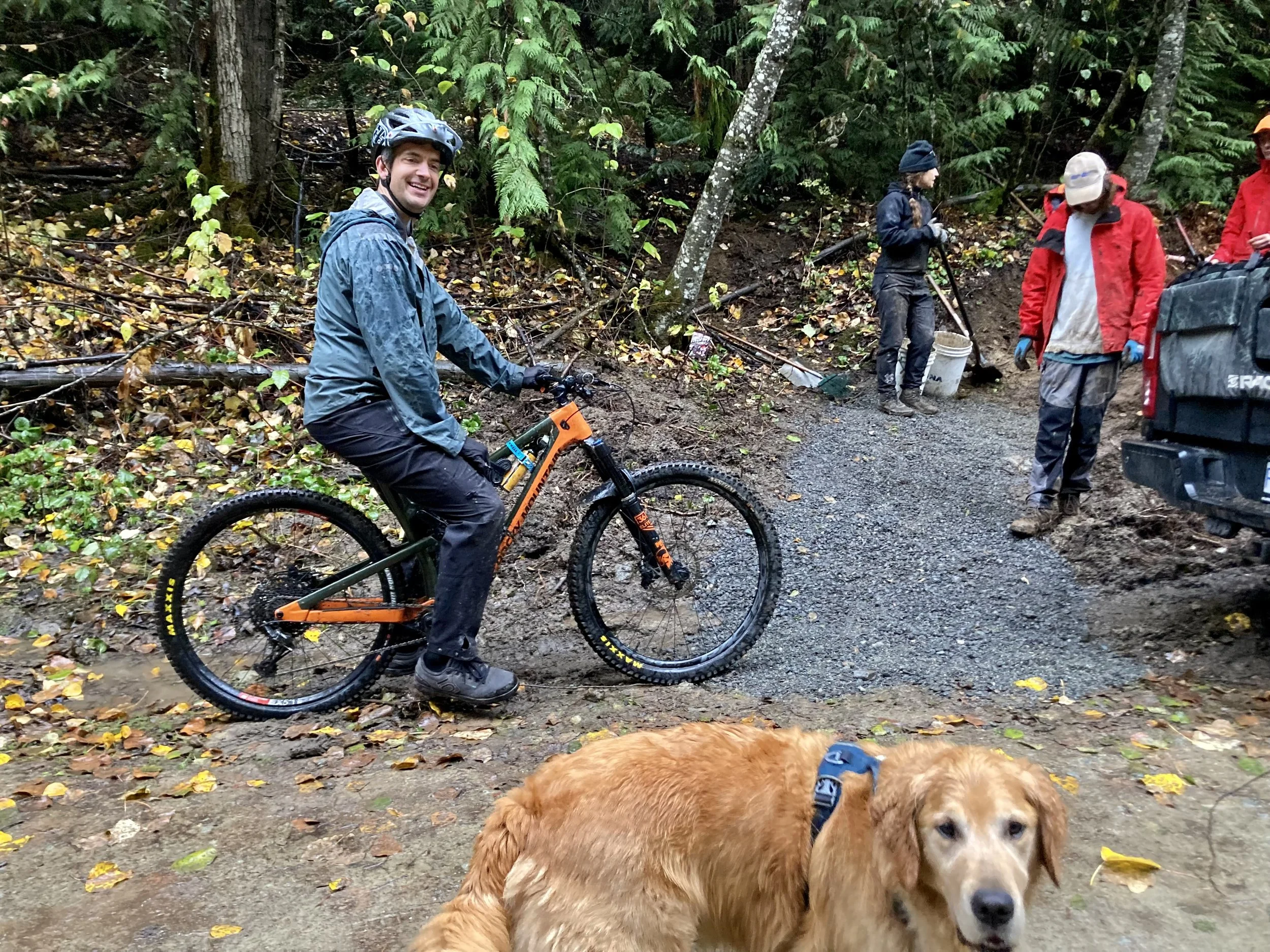 The fresh tread we laid down really got put to the test by the sudden saturation. I went out to check up on our work when the atmospheric river let up (Thursday afternoon) and found deep tire ruts in the gooey mineral soil. Time to dry is what the trail now needs to “cement”. This serves as a reminder to please stay off our smooth dirt trails during heavy weather events this Fall. I’m emphasizing this message specifically for this summer’s freshest work: Far Out 3, Flashback 1 and Flashback 5.