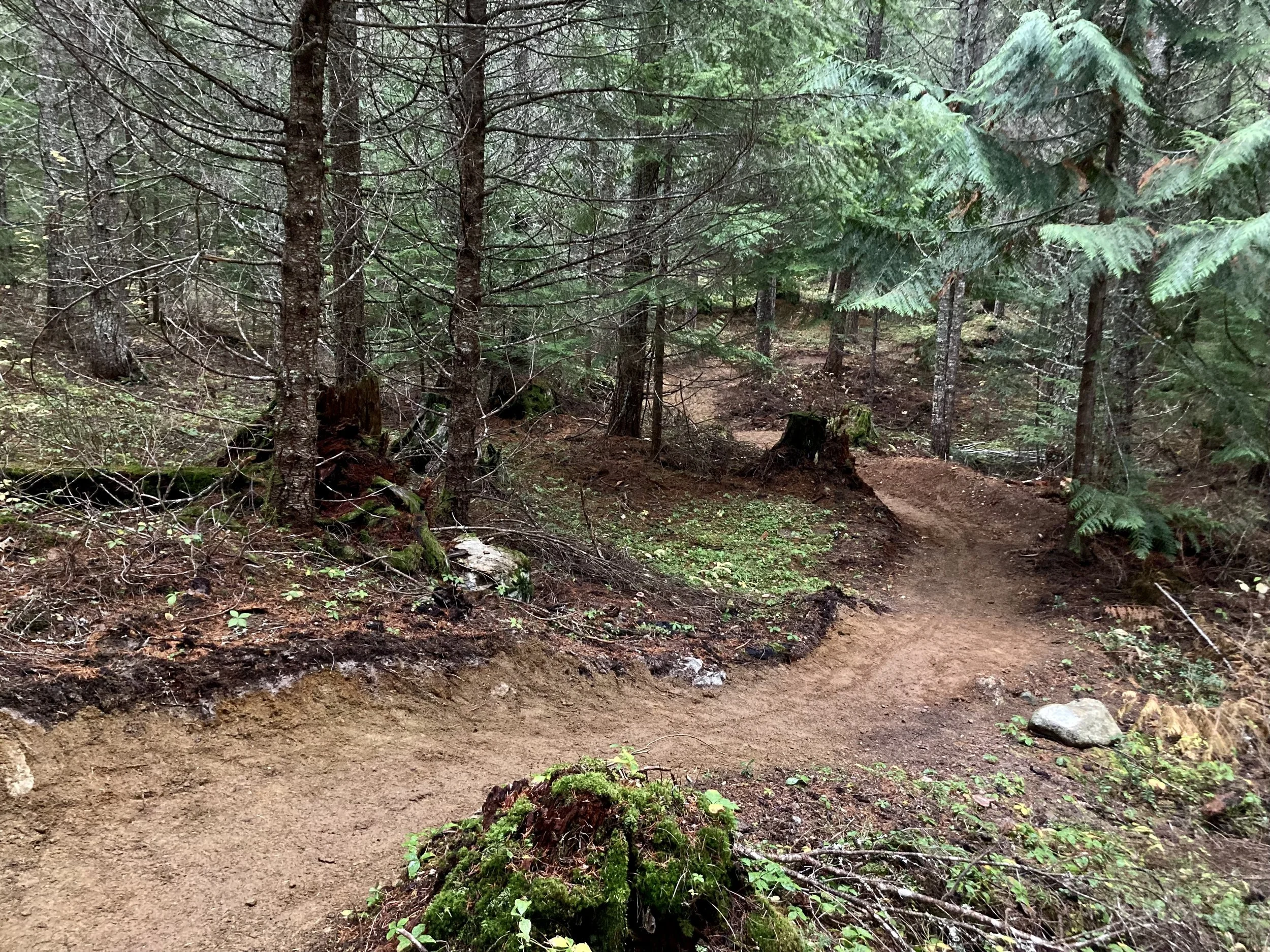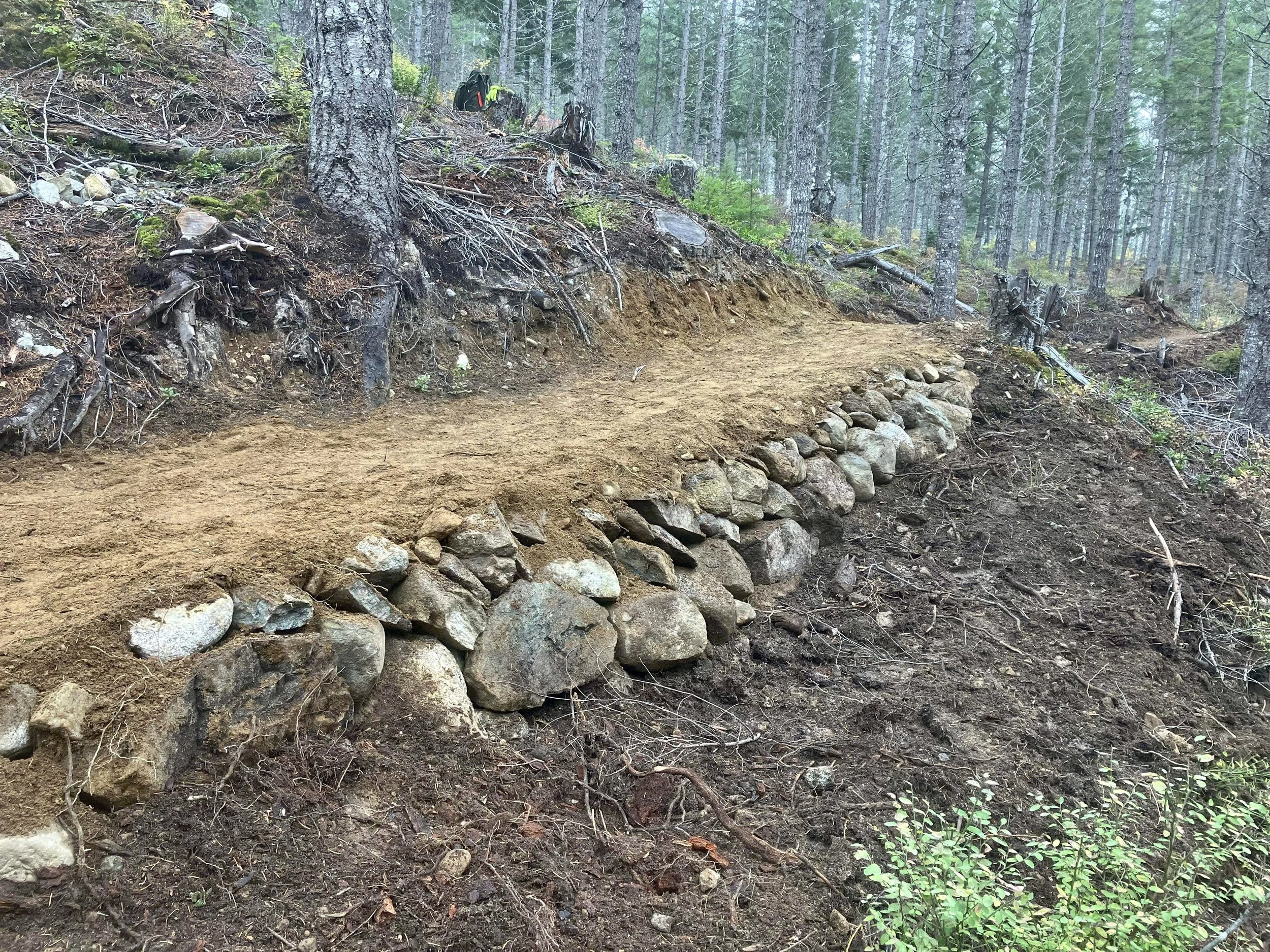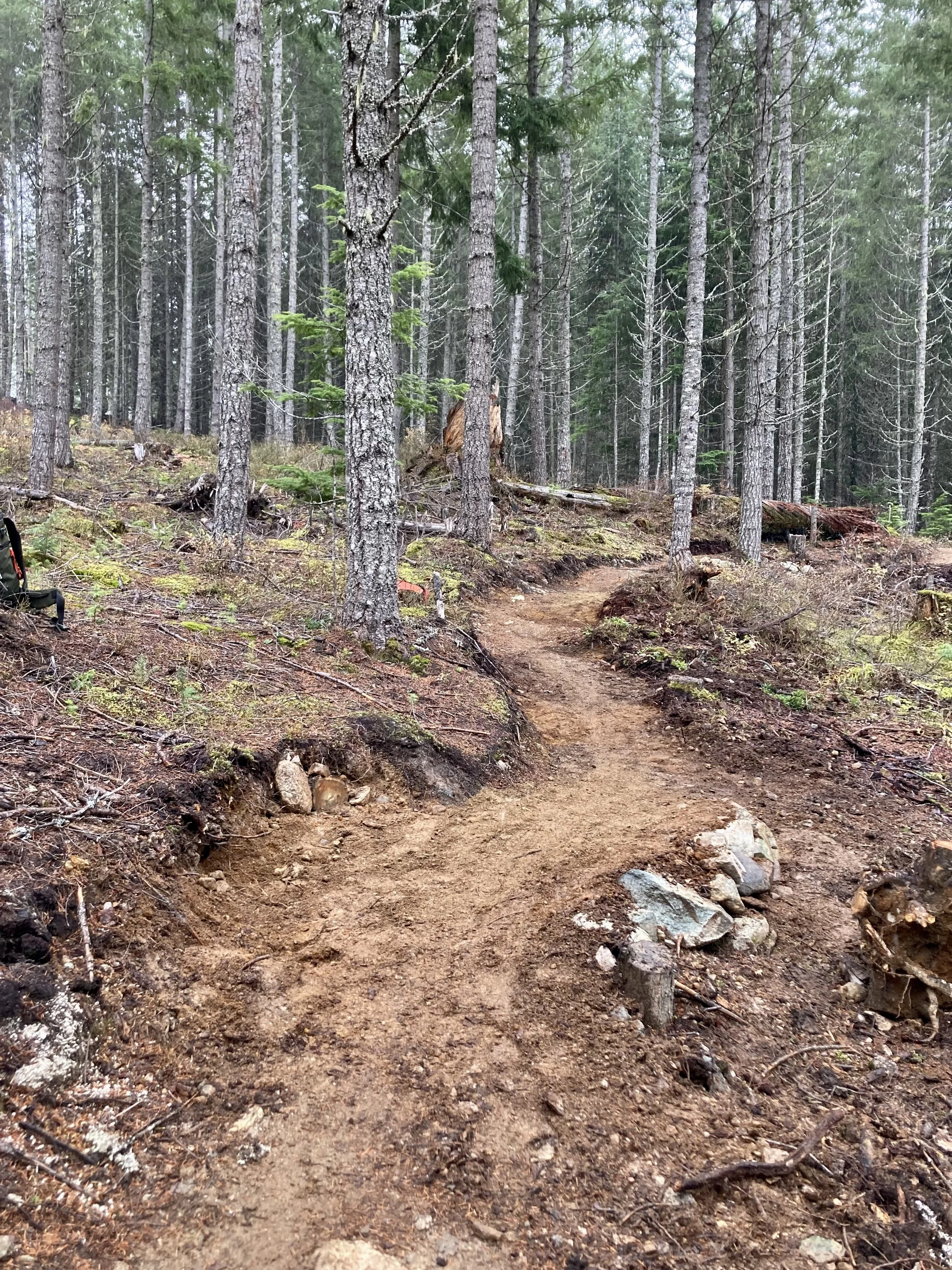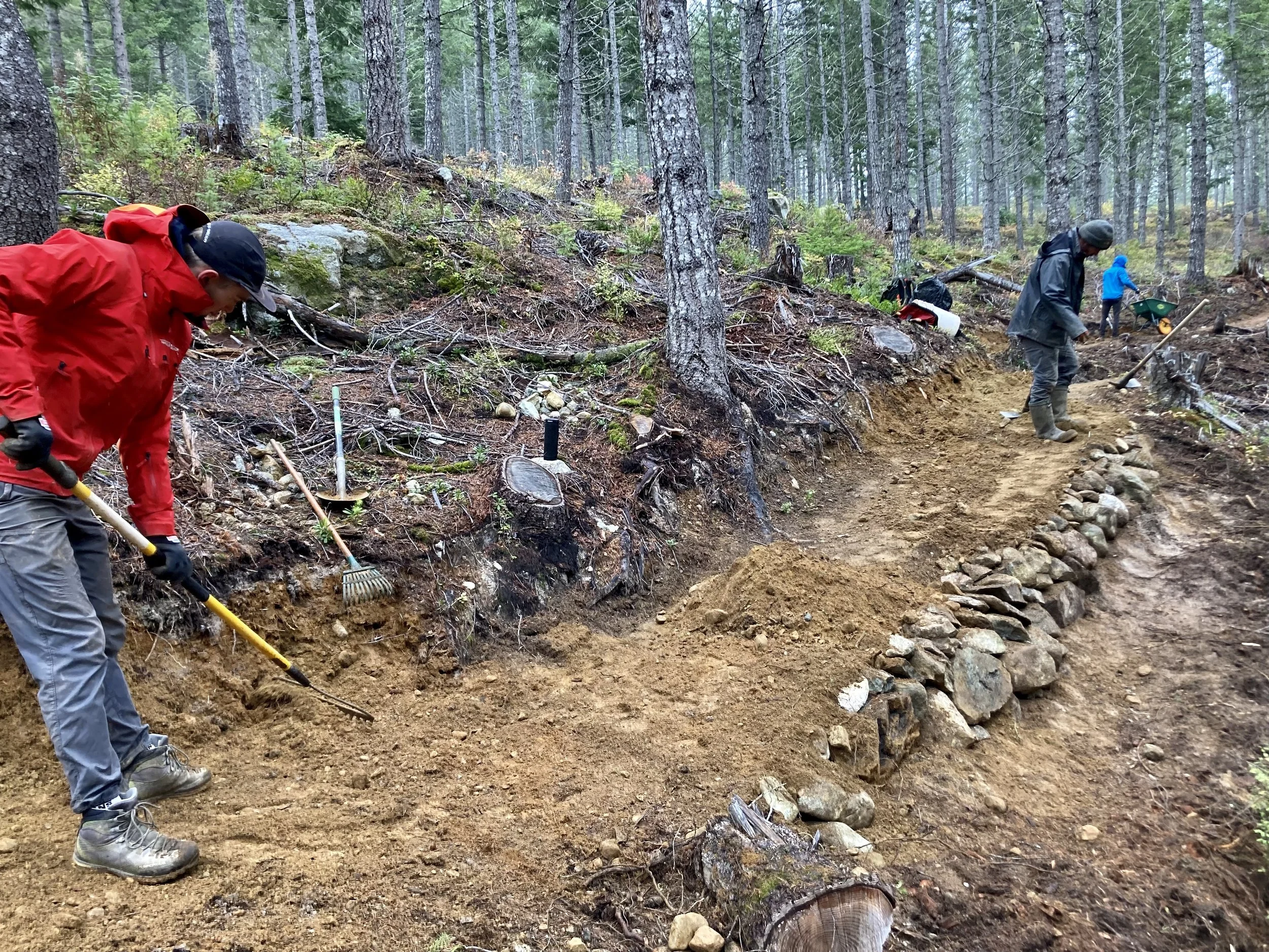 I spent last weekend at the WORCA Board of Director’s annual retreat. Between program reviews and planning discussions, we sampled trails on Eagle and Burke mountains in Coquitlam. The eerie fog made the forest so dark! This reminded me that the seasonal switch was imminent. I joined the trail crew on Monday as we returned to Far Out 3 with haste in our step: Winter is coming! You know how I love to finish a project, so we went full gas with the Adaptive-MTB blue rating upgrades. We pulled some stumps and benched through rotten logs. I wrestled with an “iceberg” rock as well… Everywhere we worked, we made huge craters in the trail. Filling those holes was easy and had a serendipitous side effect: We got to clean up all of the rocks piled along the trail during the original construction. On Tuesday, we prepared for cold rain but settled for snow all afternoon. The end was in sight and after a night time low of -5c, we completed Phase 1 of our Adaptive-MTB blue project. Huge thanks go out to Craig Mackenzie, who concocted this great inclusive initiative and “put his muscle where his mouth is” - digging away at this section of trail all summer!