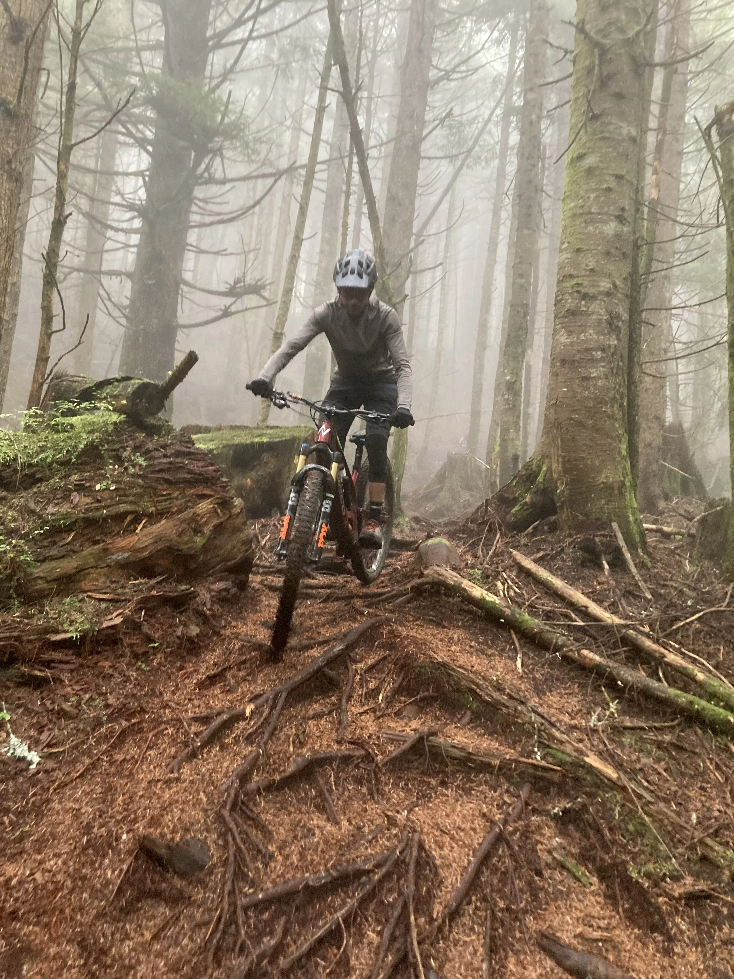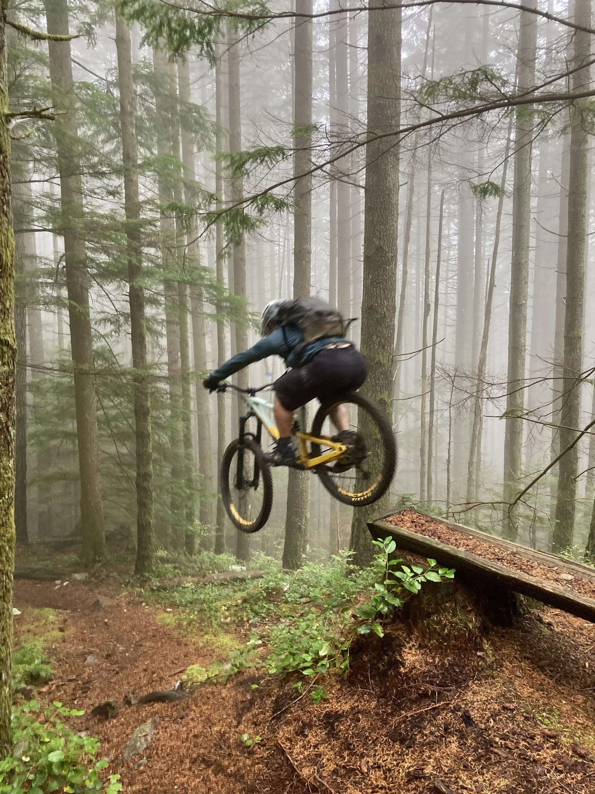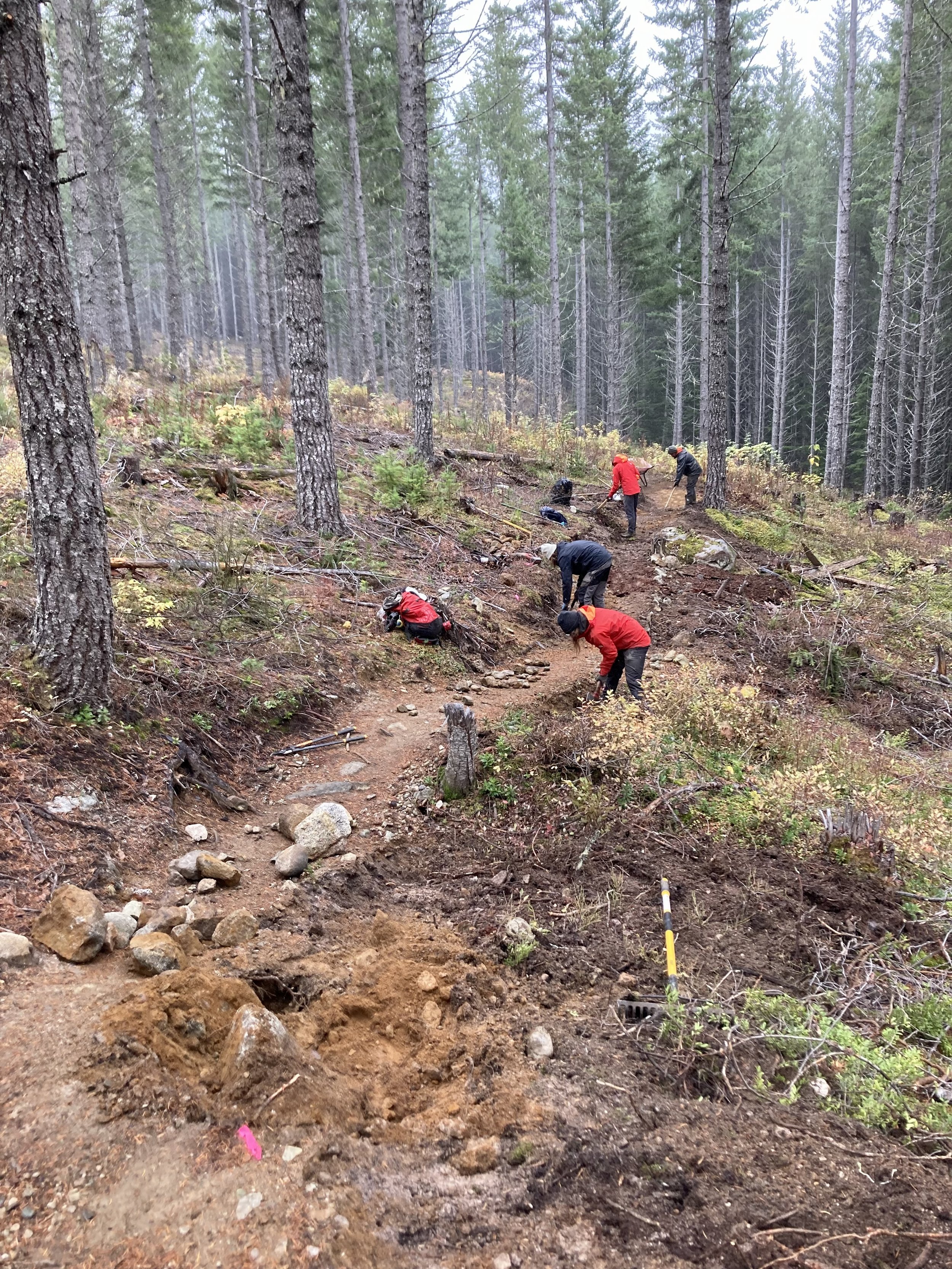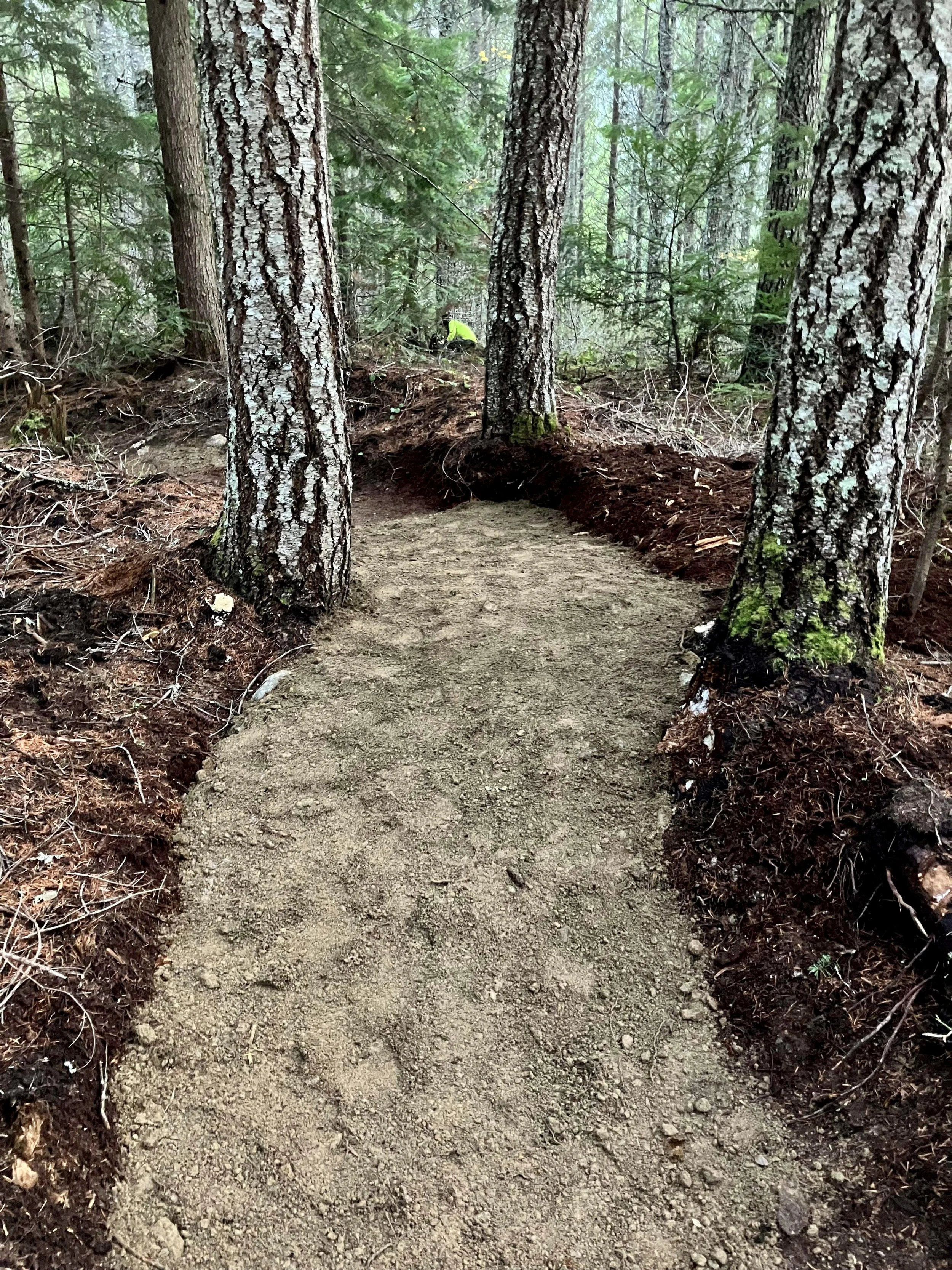 I spent last weekend at the WORCA Board of Director’s annual retreat. Between program reviews and planning discussions, we sampled trails on Eagle and Burke mountains in Coquitlam. The eerie fog made the forest so dark! This reminded me that the seasonal switch was imminent. I joined the trail crew on Monday as we returned to Far Out 3 with haste in our step: Winter is coming! You know how I love to finish a project, so we went full gas with the Adaptive-MTB blue rating upgrades. We pulled some stumps and benched through rotten logs. I wrestled with an “iceberg” rock as well… Everywhere we worked, we made huge craters in the trail. Filling those holes was easy and had a serendipitous side effect: We got to clean up all of the rocks piled along the trail during the original construction. On Tuesday, we prepared for cold rain but settled for snow all afternoon. The end was in sight and after a night time low of -5c, we completed Phase 1 of our Adaptive-MTB blue project. Huge thanks go out to Craig Mackenzie, who concocted this great inclusive initiative and “put his muscle where his mouth is” - digging away at this section of trail all summer!