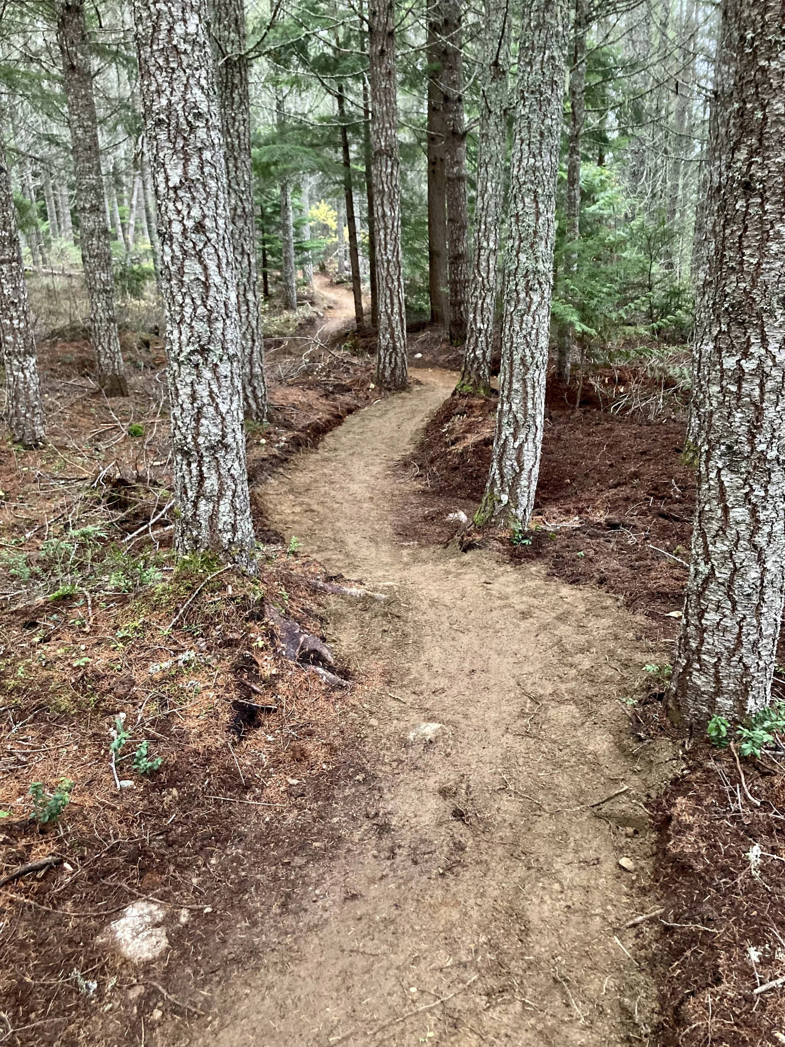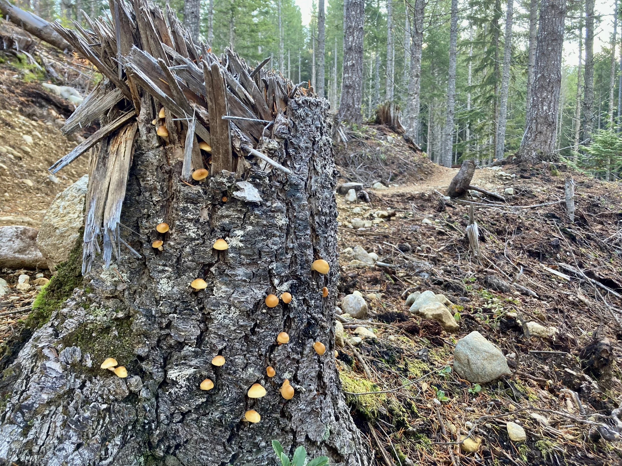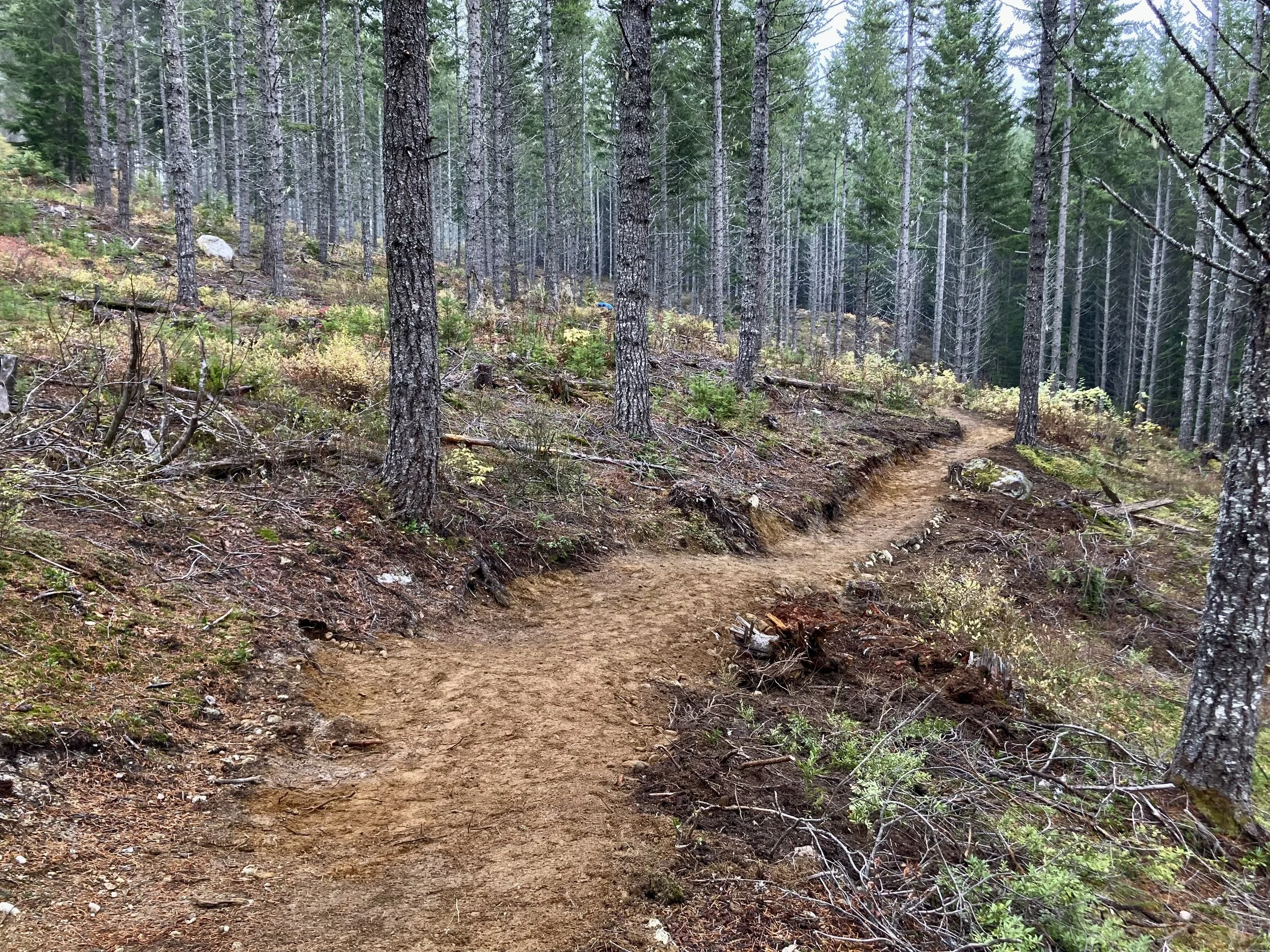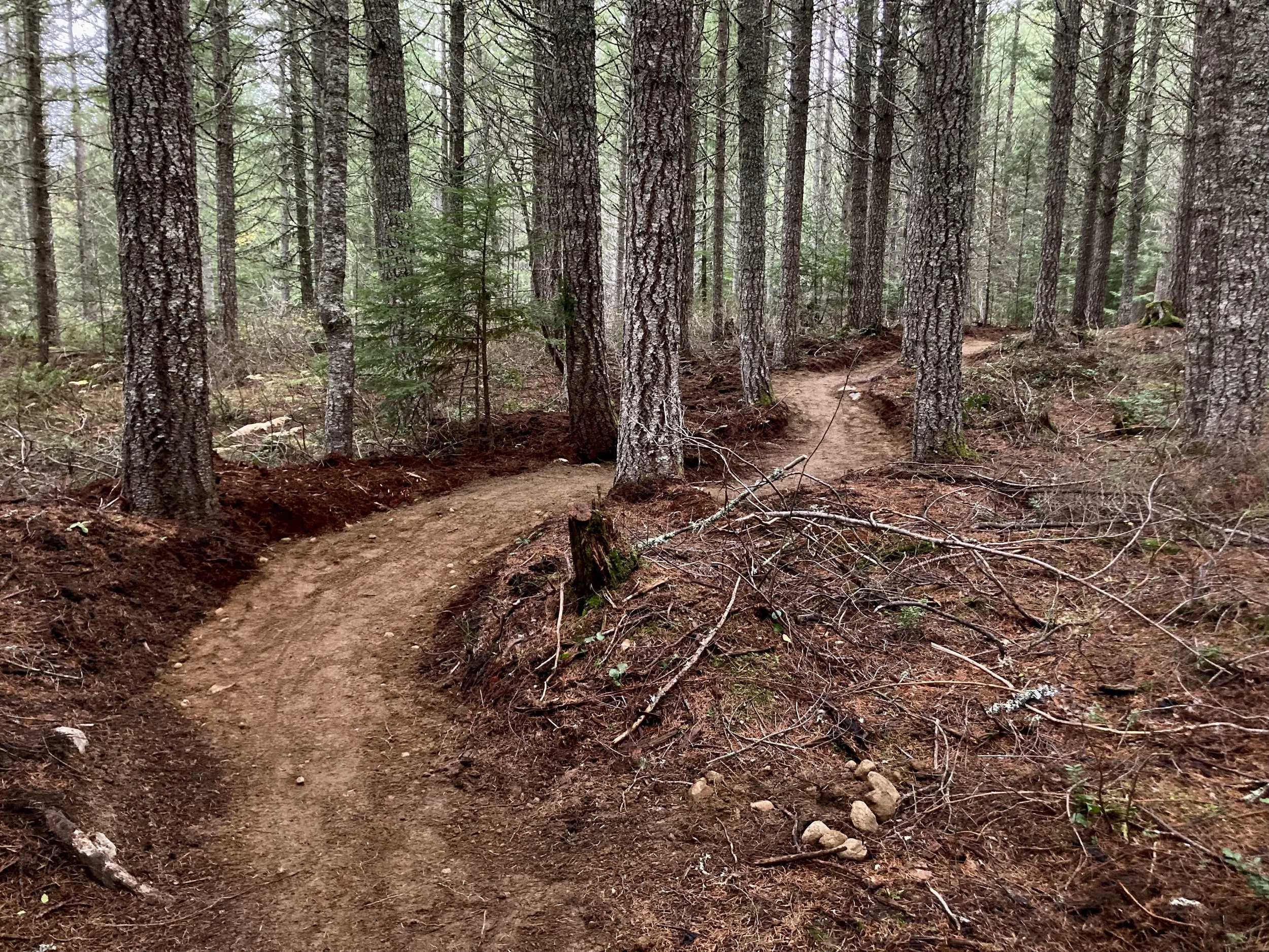 I spent last weekend at the WORCA Board of Director’s annual retreat. Between program reviews and planning discussions, we sampled trails on Eagle and Burke mountains in Coquitlam. The eerie fog made the forest so dark! This reminded me that the seasonal switch was imminent. I joined the trail crew on Monday as we returned to Far Out 3 with haste in our step: Winter is coming! You know how I love to finish a project, so we went full gas with the Adaptive-MTB blue rating upgrades. We pulled some stumps and benched through rotten logs. I wrestled with an “iceberg” rock as well… Everywhere we worked, we made huge craters in the trail. Filling those holes was easy and had a serendipitous side effect: We got to clean up all of the rocks piled along the trail during the original construction. On Tuesday, we prepared for cold rain but settled for snow all afternoon. The end was in sight and after a night time low of -5c, we completed Phase 1 of our Adaptive-MTB blue project. Huge thanks go out to Craig Mackenzie, who concocted this great inclusive initiative and “put his muscle where his mouth is” - digging away at this section of trail all summer!